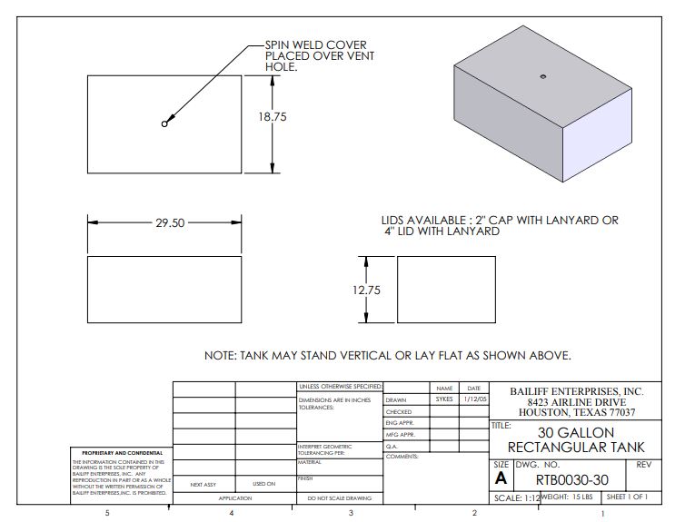 DISCONTINUED - 30 GALLON HDPE RECTANGULAR TANK 1.9SG