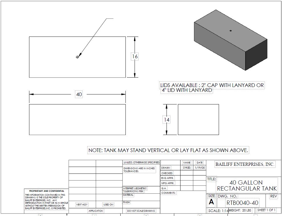 40 GALLON POLYPROPYLENE RECTANGULAR TANK 1.9SG - 40 IN. LONG